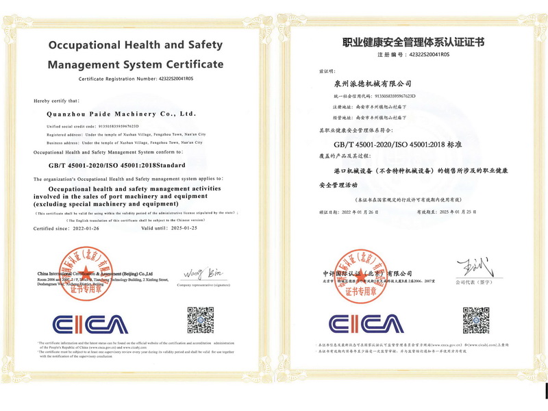 職業(yè)健康安全管理體系認(rèn)證證書
